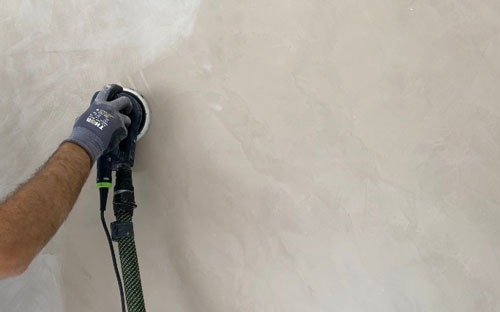 Når alt har tørket (neste dag, ca 12 timer) skal overflate slipes med en eksentersliper. Bruk sandpapir med kornstørrelse 100-120. Slipegraden har direkte innvirkning på sluttresultatet. Når du er ferdig, fjern alt støv fra overflaten.